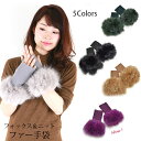 ボリューミーなフォックスファー付き 手首まで暖か スマホ操作らくらくフォックス フィンガーレス ニット グローブ ファー手袋 レディース 暖か スマホ手袋 スマートフォン 操作 秋冬 No.306790