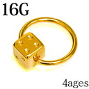 サイコロの目にシャフトをはめます♪ボディピアス 16G ステンレス ダイスボールキャプティブリング / 16ゲージ ゴールド 輪っか CBR ロブ ホール サイコロ モチーフ 軟骨ピアス PVD リングピアス フープピアス かっこいい かわいい 16g