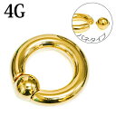大きなゲージでもキャッチの脱着が簡単♪ボディピアス 4G ステンレス スプリングキャプティブビーズリング / 4ゲージ ゴールド バネ 簡単 輪っか CBR 特殊 ロブ ホール シンプル フープ リングピアス PVD