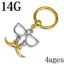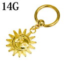 ゴールドコーデの一部にぜひ♪ボディピアス 14G 太陽&三日月チャーム付きキャプティブリング / ステンレス ゴールド 14ゲージ PVD リング CBR Sun ムーン 軟骨ピアス ロブ リングピアス 月