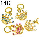 モチーフが大きめでインパクト大なアイテム☆ボディピアス 14G ステンレス クラウンチャーム付きキャプティブリング / 14ゲージ ゴールド 王冠 CBR ロブ かわいい モチーフ 軟骨ピアス デザイン CZ フープ リングピアス 14g