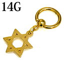 個性派で可愛いアイテムボディピアス 14G ダビデスターチャーム付きキャプティブリング / ステンレス ゴールド 14ゲージ 輪っか リング CBR 星 フープ ホシ 軟骨ピアス ロブ リングピアス デザイン 六芒星