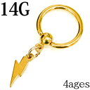 シンプルプレートタイプが人気ですボディピアス 14G 稲妻モチーフ付きキャプティブビーズリング / ステンレス ゴールド 14ゲージ 輪っか リング CBR 316L 雷 シンプル 軟骨 かっこいい PVD
