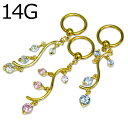 モチーフが大きめでインパクト大なアイテム☆ボディピアス 14G ステンレス CZチャーム付きウェーブモチーフキャプティブリング / 14ゲージ ゴールド ウェーブ bcr イヤーロブ かわいい おしゃれ 軟骨ピアス デザイン CZ キャプティブビーズリング リングピアス 14g 下がる ジュエル