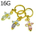 モチーフ激カワ♪なアイテム☆ボディピアス 16G ステンレス CZチャーム付きクロスキャプティブリング / 16ゲージ ゴールド 十字架 CBR イヤーロブ かわいい モチーフ 軟骨ピアス デザイン ジュエル キャプティブビーズリング リングピアス 14g 下がる PVD