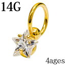 モチーフが大きめでインパクト大なアイテム☆ボディピアス 14G ステンレス コイル&スターチャーム付きキャプティブリング / 14ゲージ ゴールド 捩じれ CBR イヤーロブ かわいい モチーフ 軟骨ピアス デザイン CZ キャプティブビーズリング リングピアス 14g 下がる 星