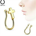 なんちゃって鼻ピアスボディピアス クロスIPノーズクリップ / 17G パーツ ゴールド 挟む はさむ 十字架 柔らかい かわいい 鼻ピアス風 モチーフ 鼻ピアスに見える PVD