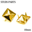 レザークラフトなどの飾りとしておすすめです☆【宅配便送料無料】20個入り 挿し込み式スタッズ 10mmスクエア / クラフト レザークラフト 金具 パーツ 四角 四角形 挿し込む 皮製品 かっこいい 爪折り 4つ爪 ゴールド