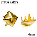 レザークラフトなどの飾りとしておすすめです☆【宅配便送料無料】20個入り 挿し込み式スタッズ 6mmスクエア / クラフト レザークラフト 金具 パーツ 四角 四角形 挿し込む 皮製品 かっこいい 爪折り 4つ爪 ゴールド