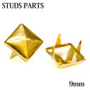 レザークラフトなどの飾りとしておすすめです☆【宅配便送料無料】20個入り 挿し込み式スタッズ 9mmスクエア / クラフト レザークラフト 金具 パーツ 四角 四角形 挿し込む 皮製品 かっこいい 爪折り 4つ爪 ゴールド