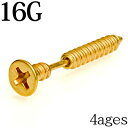 工具好きさん必見アイテムボディピアス 16G ネジモチーフバーベル / ステンレス ゴールド 16ゲージ 工具 ロブ 軟骨ピアス ストレート かっこいい プラスネジ PVD かっこいい モチーフピアス