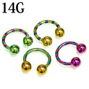 オシャレな色付きタイプボディピアス 14G カラーチタンコーティングサーキュラーバーベル / 14ゲージ 色付き ステンレス コンク オービタル ロブ 軟骨ピアス ヘリックス スクランパー カラフル ストライプ ボーダー 金属アレルギー対応 かっこいい かわいい