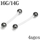 長めのシャフトでホールの休憩を♪ボディピアス 14G ハーフボール付きアクリルフレキシブルバーべル / 透明ピアス 透ピ クリア 16ゲージ 樹脂 ストレート 目立たない 隠す リテイナー PTFE 舌ピアス 柔らかい 金属アレルギー対応 軟骨ピアス