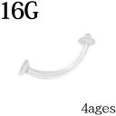 トップはディスク型のカーブタイプボディピアス 16G カーブリテイナー / 透明ピアス 透ピ クリア 16ゲージ 樹脂 ストレート 目立たない 隠す リテイナー パーツ アイブロウ 曲がっている 眉ピ バナナ 軟骨ピアス 金属アレルギー対応 かわいい