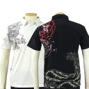 | 全国どこでも 送料無料 !春夏新作!【SATORI】 波に龍家紋柄 刺繍半袖ポロシャツ 【さとり】メンズ&レディース 和柄 綿100% GPS-404