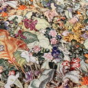 布生地 nora. 25B 日本製 手芸 ハンドメイド 商用利用可【nora. ノラ】25SU-AM1007(3D) ねこ ちょうちょ かわいい 花柄 ファンタジー カラフル 大柄 大きめ柄 コットン100% シーチング 110cm幅【10cm単位販売】