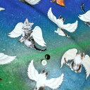 布生地 nora. 25B 日本製 手芸 ハンドメイド 商用利用可【nora. ノラ】25SU-AM1008(3D) ねこ 羽 かわいい 宇宙 ファンタジー ユニーク カラフル 大柄 大きめ柄 コットン100% シーチング 110cm幅【10cm単位販売】