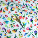 【nora. ノラ】21SU-ST1001(3D) 南国風 鳥柄 インコ 生地 鸚鵡柄 オウム柄 更紗柄 サラサ柄 リアルタッチ 大柄 大きめ柄 カラフル コットン100% シーチング 110cm幅【10cm単位販売】