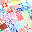 布生地 nora. 25B 日本製 手芸 ハンドメイド 商用利用可【nora. ノラ】25SU-SN1099(3D) 北欧風 タイル柄 幾何花柄 幾何学柄 カラフル おしゃれ コットン100% シーチング 110cm幅【10cm単位販売】