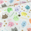 布生地 nora. 25B 日本製 手芸 ハンドメイド 商用利用可【nora. ノラ】25SU-ST1532(3D) ネコ アルファベット 足あと 動物 ポップ かわいい コットン100% シーチング 110cm幅【10cm単位販売】