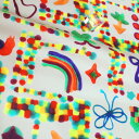 布生地 nora. 25B 日本製 手芸 ハンドメイド 商用利用可【nora. ノラ】25SU-ST1531(3D) リボン 粘土 立体 虹 ポップ 水彩風 かわいい コットン100% シーチング 110cm幅【10cm単位販売】