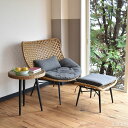 【3点セット】パーソナルチェア オットマン サイドテーブル チェアー リラックス イス 椅子 足置き いす ラウンジ バルコニー 庭 屋外 カフェ アウトドア PE ラタン 人工ラタン ポリエチレン 籐 丈夫 アジアン 強化ガラス ガーデンファニチャー クッション付