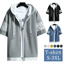 手軽に重ね着を楽しめますメンズ パーカー半袖 夏服 メンズ- 無地 フード付き レイヤード シンプル おしゃれ 大きいサイズ スウェット プルオーバー ゆったり カジュアルおおきいサイズ 人気 服 メンズ