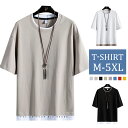 優れた通気性や伸縮性もあり春夏秋に大活躍してくれるアイテムです。tシャツ メンズ 半袖 無地 重ね着風 大きいサイズ ゆったり 五分袖 メンズ 夏服