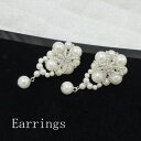 パール ビーズ イヤリング本日はポイント5倍! パール ビーズ イヤリング お花 モチーフのストーン付 パール ビーズ イヤリング お呼ばれ パーティ パールイヤリング フォーマル 結婚式 ゴージャス ウェディング パーティー アクセサリー クリスマス