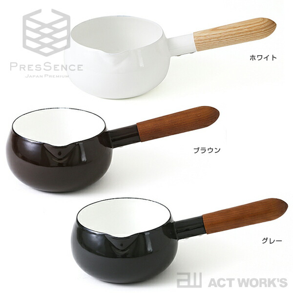 【ポイント10倍、送料無料】ホーローと天然木の美しい片手鍋《全3色》PRESSENCE ソースパン 片手鍋 ホーロー 琺瑯 【プレッセンス デザイン雑貨 キッチン雑貨 台所 北欧 シンプル ほうろう 日本製造 直火 国産 ユキヒラ 雪平鍋】