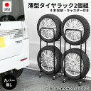 タイヤスタンド スタッドレス 冬 夏 タイヤ カー用品 頑丈 タイヤ収納 新生活薄型タイヤラック 軽自動車用 カバー付 紫外線 劣化防止 4本収納 2個組 2段式 スリムタイプ キャスター付き ストッパー付 幅18 外径60cmまで対応 耐荷重50kg スチール 縦置き ブラック 日本製 0823