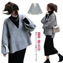 バイカラー ニット ワイドパンツ 上下セット Vネック 長袖 レディース ニットパンツ ロングパンツ セーター 大きいサイズ 配色 着回し 体型カバー 秋 冬
