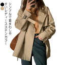 S/M/L/XL ミディアム丈 ステンカラーコート ゆったり 体型カバー 上品アウター レディース ステンカラーコート 春秋冬 コート おしゃれ スプリングコート ミディアム丈 トレンチコート カジュアル きれいめ ゆったり 体型カバー 軽い 上品 通勤 通学 無地 カーキー ブラック 送料無料