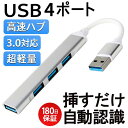 高速データ転送4in1 USBハブ 挿すだけ 自動認識 USB4ポート 2.0/3.0/Type-A4つ同時接続 USBハブ