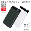 大幅値下げ 持ち運びしやすい モバイル 充電器 6000mAh iPhone8なら約2回フル充電 USB-Aから最大2.4Aのハイパワー出力 USBType-Cから 最大3A出力で急速充電 薄型11mm 残量も一目瞭然!モバイルバッテリー 充電器 6000mAiPhone スマートフォン タブレット 残量表示 薄型 高出力 2.4A 急速充電 対応 Type-C microUSB ケーブル付属 リチウム ホワイト ブラック 震災 災害 特価 SALE