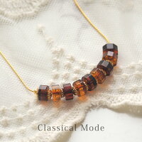ゴールドプレートチェーンは5cmのアジャスターが付いているので45cmから50cmの間で長さを調節することができます。 琥珀の色はブラックベリー、金属の色をイエローゴールド・ピンクゴールドからお選びください。