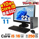 届いてすぐに使える 安心サポート&保証付き! 中古パソコン 中古デスクトップパソコン 中古デスクトップPC 中古 パソコン デスクトップPC 中古PC リフレッシュPC【中古】 Windows11 超小型 軽量 富士通 ESPRIMO G5011/GX 22型ワイド液晶セット 第10世代 Core i5 10500T メモリ16GB 新品NVMe SSD250GB Windows11 Pro デスクトップパソコン Office付き