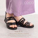 歩く時の衝撃を軽減してくれるエアクッションと細いストラップが足の甲をしっかり覆い脱げにくく安定感のある履き心地のストラッピーサンダル。エア クッション ストラッピー サンダル エアソール スポサン 歩きやすい カジュアル 軽量 履きやすい 楽ちん 走れる レディース 厚底プラットフォーム 脱げない 通気性 軽い 婦人靴 痛くない 春夏 ブラック エアソール 美脚 高品質 coca