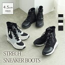 伸縮性のあるストレッチとエアソールで美脚効果、シルエットも◎デザイン性と履きやすさを兼ね備えたハイブリットシューズ。【サイズ交換・返品無料】サイドジップ ストレッチ ハイカット スニーカーブーツ レディース 厚底 エアソール 5cmヒール クッション 歩きやすい 痛くない 履きやすい 軽量 楽ちん 走れる おしゃれ 可愛い 黒 ブラック 通勤 婦人靴 高品質 coca