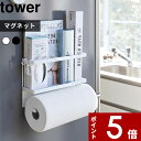 【送料無料】【着後レビューで選べる特典付き】マグネットで簡単取り付け/浮かせて収納/キッチンペーパーホルダー/ペーパーロール/キッチン/マグネット/冷蔵庫/アイディア収納 【レビュー特典】 tower 〔 山崎実業 マグネットトレー付きキッチンペーパーホルダー タワー 〕 公式 ホワイト ブラック 4098 4099 キッチンペーパーホルダー トレイ カバー フック マグネット 大判対応 キッチン 壁面収納 モノトーン おしゃれ シンプル YAMAZAKI