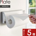 【送料無料】【着後レビューでキッチンタワシ/今治タオル】キッチンペーパーが片手で切れる!大判サイズまで対応 【レビュー特典】 Plate 〔 山崎実業 片手でカットマグネットキッチンペーパーホルダー プレート 〕 マグネット 磁石 キッチンペーパー ロール ホルダー 簡単設置 片手で切れる マグネット 磁石 大判対応 公式 ホワイト 白 4943 YAMAZAKI