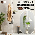 突っ張りポールラック 丸型トレイ&フックセット つっぱり棒 突っ張り棚 トレイ 突っ張りラック スリム ハンガーラック 突っ張りポールハンガー 高さ調整 フック フリーラック 伸縮 省スペース 隙間収納 観葉植物 ディスプレイ 棚 天井 壁 壁面 収納 H01
