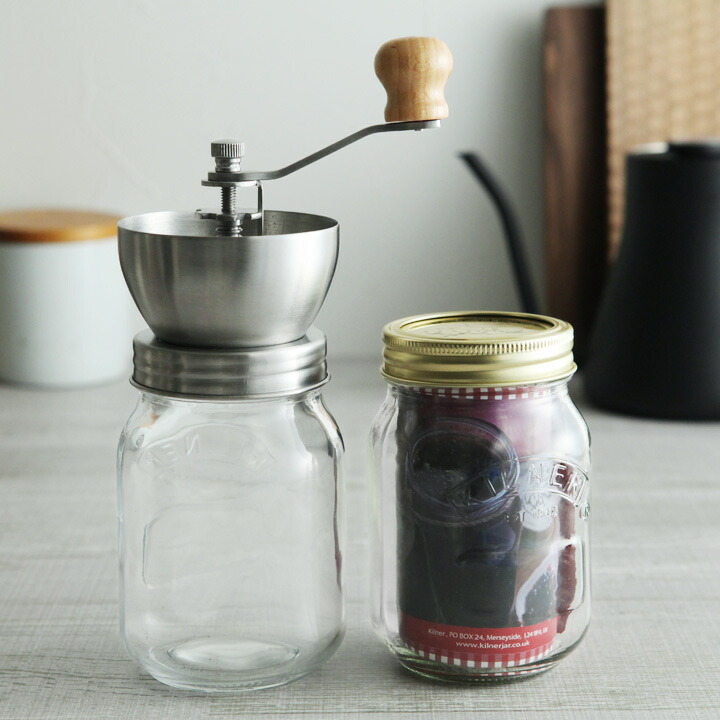 1840年代から続く英国の老舗グラスメーカーKILNER(キルナー)から届いた、コーヒーグラインダーとジャーのセットです。コーヒーグラインダーで豆を挽いて、そのままジャーに保存できる効率の良さが◎。