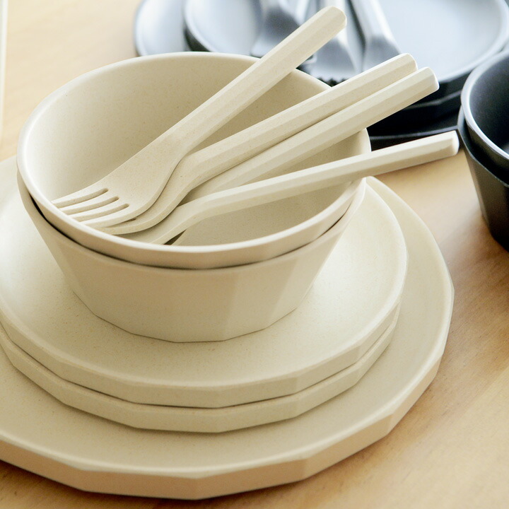 “アウトドア”を感じさせながら、“エレガンス”のあるものとは?という問いかけから生まれたという、ALFRESCO(アルフレスコ)。外でも気負いなく使える無骨さと、料理を引き立てるエレガンスさを併せ持ったデザイン。バンブーファイバーと樹脂が混ざった素材で作られ味わいある表情です。こちらは送料無料で、まとめ買いやすい11点セットです。