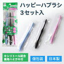 歯ブラシ+薬用ハミガキの個包装×3セットで便利!【日本製】会社用や旅行時、非常時にも便利なセット。3色入りなのでご家族で使い分けたい時にも。【ハッピーハブラシ3セット入】歯ブラシ+薬用ハミガキの個包装×3セット。来客用、携帯用、災害時用などに人気です。毛のかたさ:ふつう【日本製】