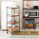 オープンラック ウッドシェルフラック ディスプレイラック キッチンラック キッチンワゴン ナチュラル キャスター付 キッチン収納 ワイヤーシェルフ フリーラック デスク横収納ラック キッチンラック キッチンワゴン 木目調 棚 収納 スリム ウッドシェルフ付 炊飯器ラック 幅40 4段 ワイヤーシェルフ ブラック スチールラック ナチュラル おしゃれ かわいい 木製棚 木製ラック ウッドラック 省スペース 組立簡単 幅43 奥行29.5 高さ105cm NFR4-43W
