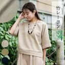 ワンサイズ 竹レーヨン素材で爽やか 涼しく 五分袖 さらさら【2月下旬頃の入荷予定】【 2026 新作 】レディース トップス 竹レーヨン バンブー 五分袖 七分袖 ロールアップ Uネック ミドル丈 体型カバー ゆったり 春 夏 秋