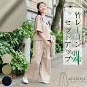 2点セット トップスとワイドパンツ 上下セット きれいめ カジュアル【2月下旬頃の入荷予定】【 2026 新作 】セットアップ 2点セット バンブー 竹 レーヨン レディース ワイドパンツ カーブパンツ ひんやり 涼しい 五分袖 体型カバー きれいめ 春 夏 秋 消臭 抗菌 ゆったり オフィスカジュアル