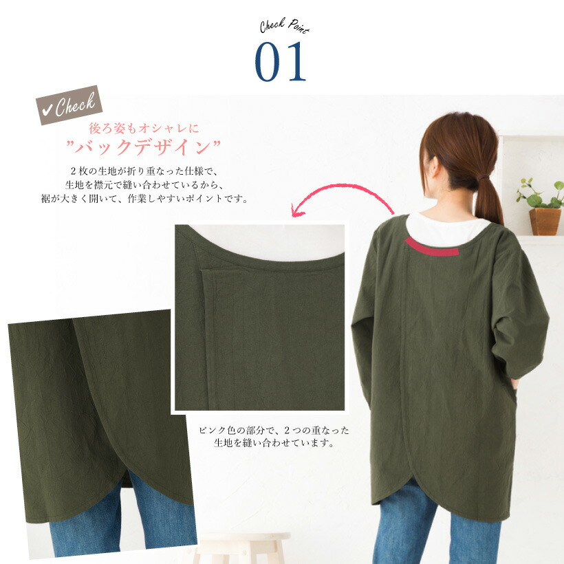 バックデザインがおしゃれな、ワッシャー生地の割烹着