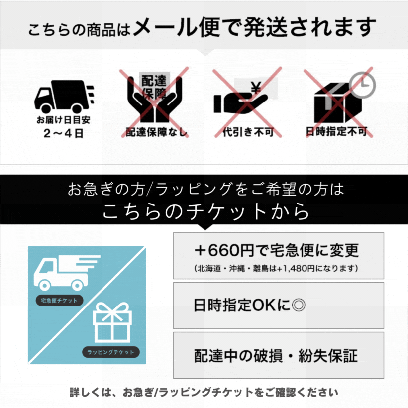 1.ポスト投函の為、「配達指定」「代金引換」は承れません。